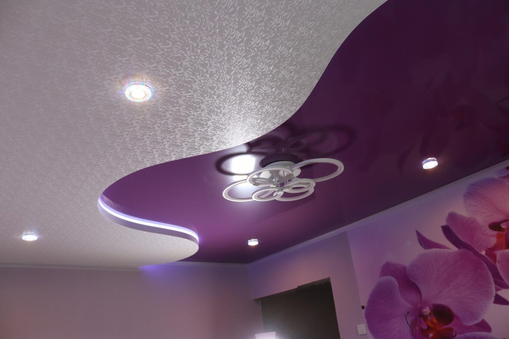 Вы можете выбрать натяжной потолок из различных материалов: матовые, глянцевые, сатиновые, текстурные и многое другое. У нас есть потолки разных цветов и фактур, чтобы удовлетворить самый изысканный вкус.